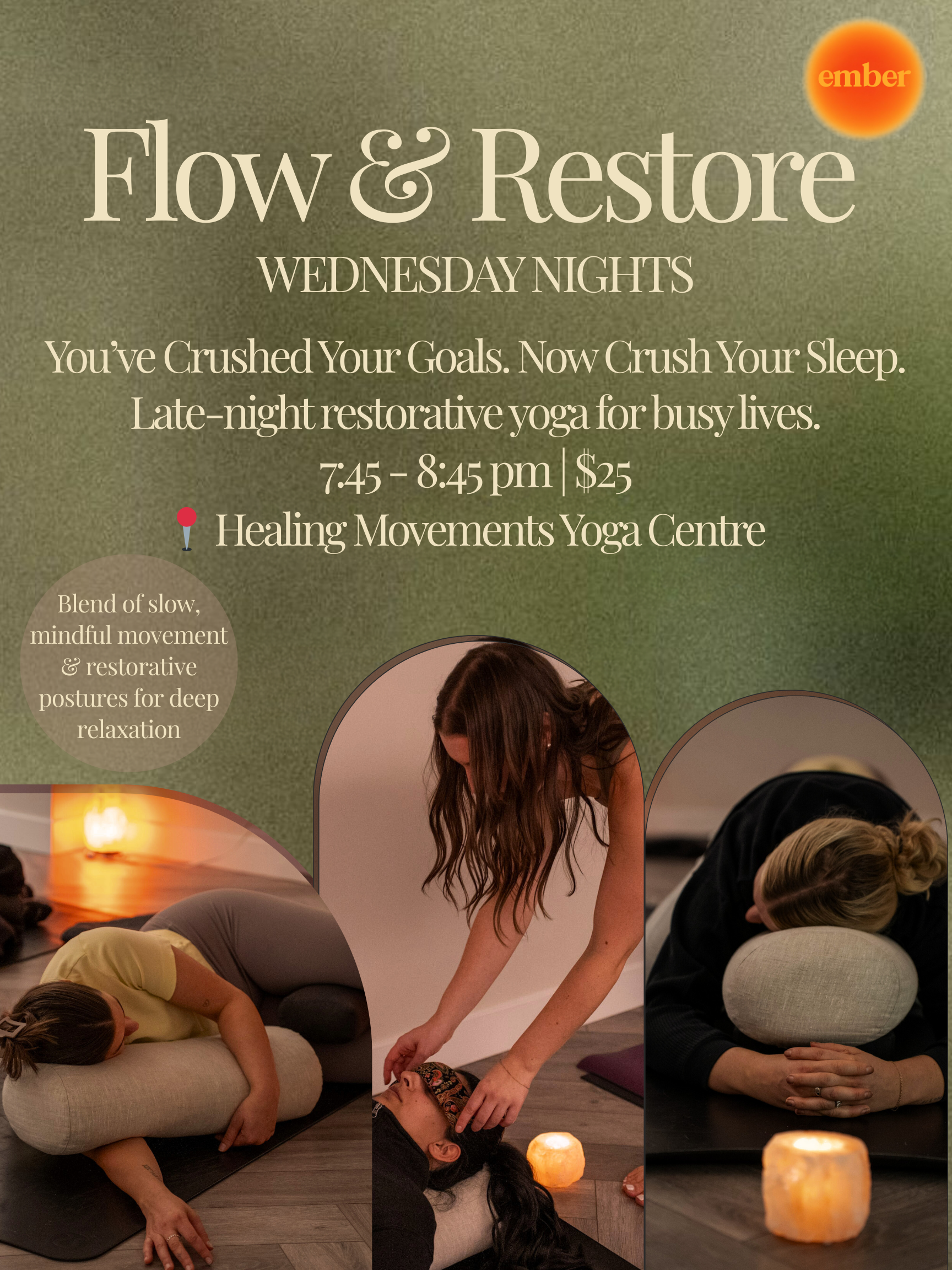 Led by Ember’s 500-hour Yoga Teacher, each session is designed to help participants regulate their nervous system, reconnect with themselves, and release the emotional and physical weight they may be carrying. Through slow, conscious movement, imagery, breathwork, and deep listening to the body’s internal messages, Somatic Yoga becomes a pathway toward self-awareness, resiliency, and balance.
